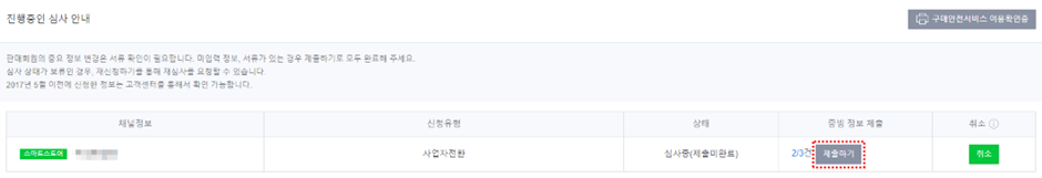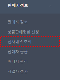 (2) 판매자정보 -> 심사내역 조회 클릭