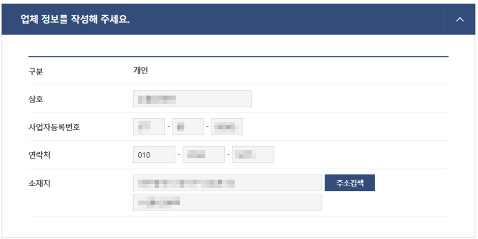 (7) 업체 정보를 작성합니다.