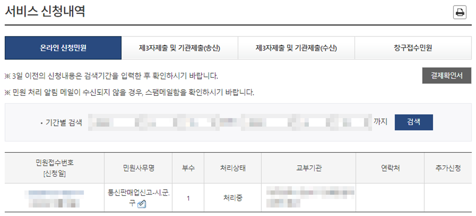 (12) 신청 하기가 완료되면 신청내역이 그림과 같이 나타납니다.