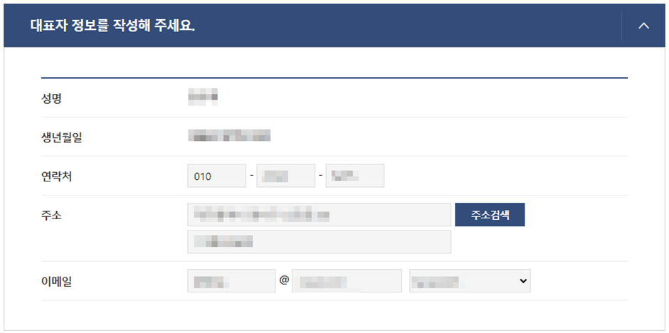 (8) 대표자 정보를 작성합니다.
