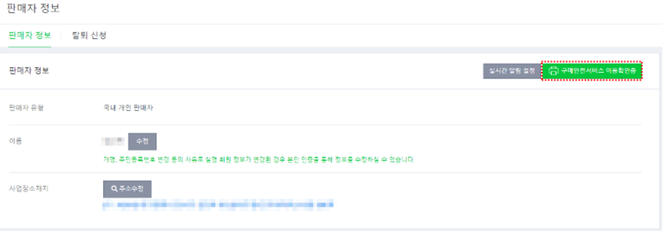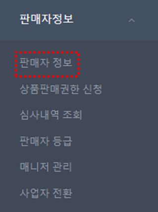 (1) 판매자 정보에 판매자 정보를 클릭합니다.