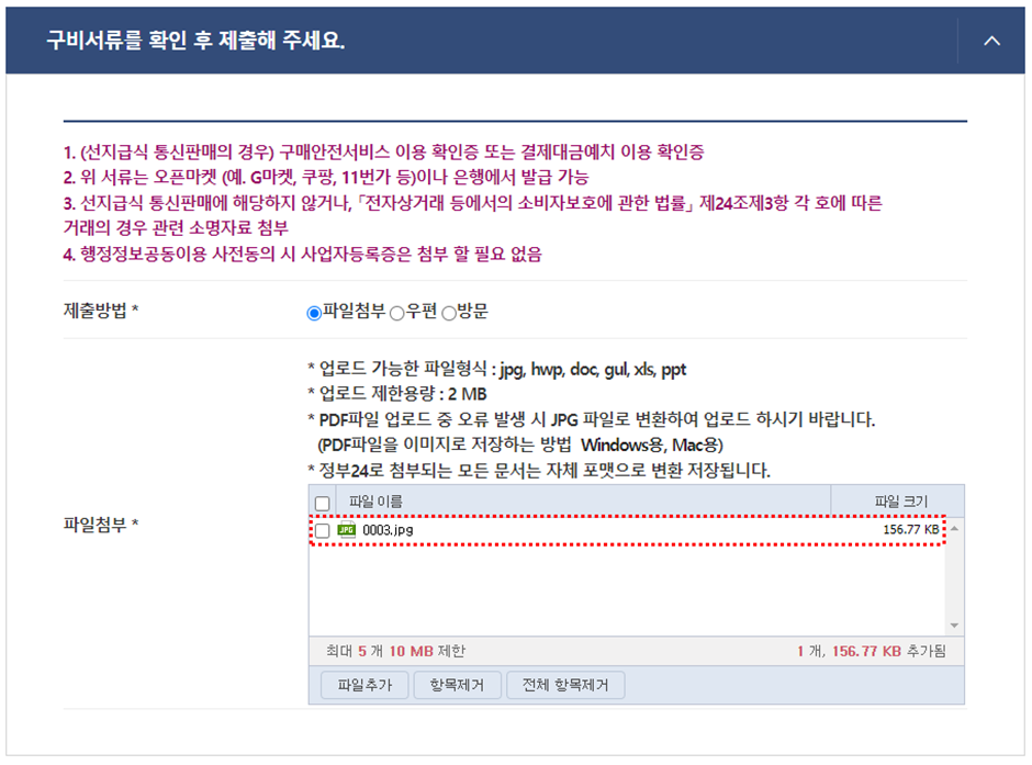 (10) 구비서류에 구매안전서비스 이용 확인증을 첨부합니다.