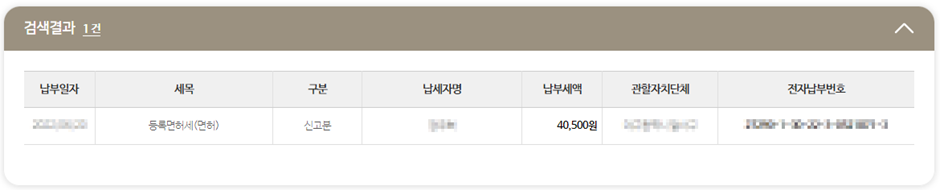 (5) 검색 결과 목록에서 등록면허세(면허) 관련 칸을 클릭하여 납부하면 됩니다.
