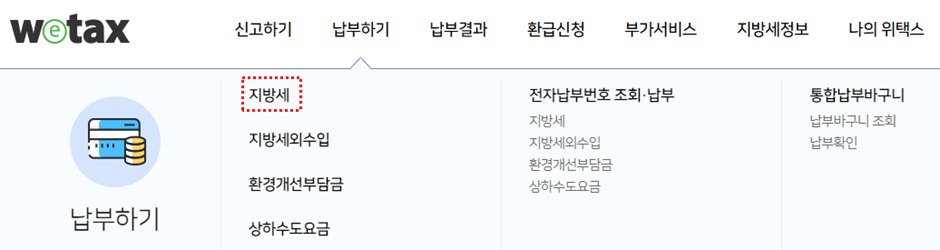 (4) 납부하기에서 지방세를 클릭합니다.